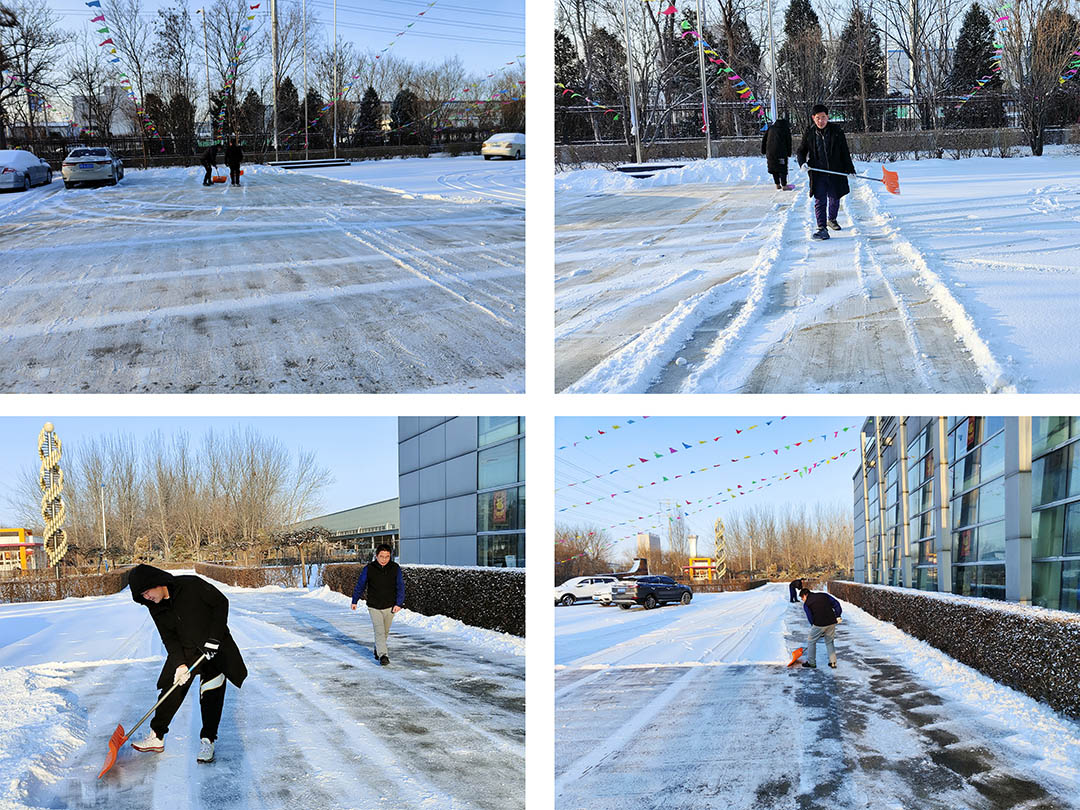 2月13日,虎年首场降雪如约而至,洋洋洒洒的雪花很快将安达集团各厂院路面覆盖。集团各子公司以雪为令,立即行动起来。各单位员工在相关领导带领下,手拿铁锹、扫帚、簸箕等工具,对办公楼门口和厂区内重要点位、路面进行积雪大清扫。积雪的清除,为员工和车辆出入提供了安全保障。寒风袭袭,尽管大家冻得手脚冰凉,但全体员工齐心协作,相互配合,一派热火朝天的除雪场景,甚是鼓舞人心。