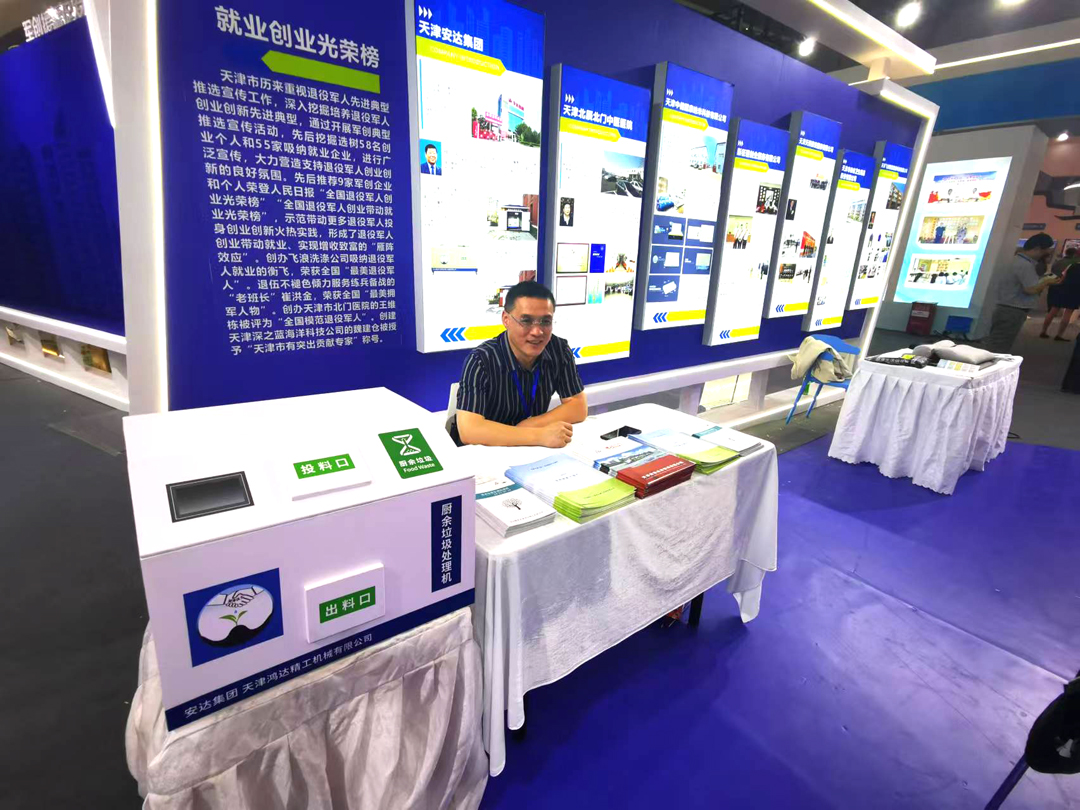 展会交流期间,安达集团参会代表王俊鹏向与会嘉宾详细地介绍了安达集团的企业发展历程以及多年来所取得的丰硕创业成果。他还向与会的军创企业家及领导们着重推荐了安达集团最新的绿色项目 ——“泔净沃土” 牌厨余垃圾及农业废物处理设备。通过对两大系列产品的应用与推广优势的深度阐释,生动还原了绿色低碳环保设备的卓越特性,并对该项目的闭环发展进行了全面而细致的阐述。