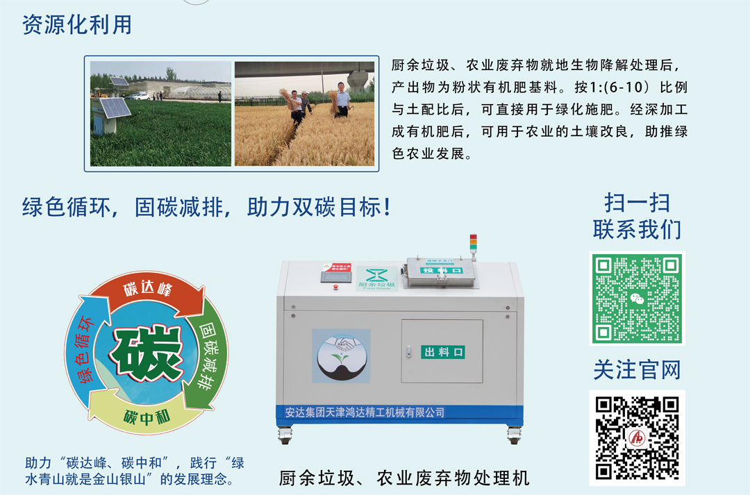 一直以来,在党委书记、董事长崔洪金的引领下,安达集团始终坚定不移地投身于厨余垃圾、农业废弃物生化处理机的研发与推广事业。集团不遗余力地全力发展新质生产力,精心谋划全生态循环产业链的布局,率先提出了“泔净、沃土、循环、共享”的“沃土计划”。紧跟国家垃圾分类及厨余垃圾减量化、无害化、资源化利用的政策要求,依托天津大学、天津商业大学、天津市农科院的科学技术,进行产学研深入结合,共同致力于厨余垃圾/农业废弃物的原位就地、资源化处理技术与环境保护的研发和应用研究,以积极的姿态助力碳达峰碳中和目标的实现。崔洪金期待通过本次参展,能够让更多受众了解安达集团在环保领域的创新成果和积极贡献,展示安达集团作为环保企业的责任与担当,进一步助力城市绿色发展和生态文明建设。